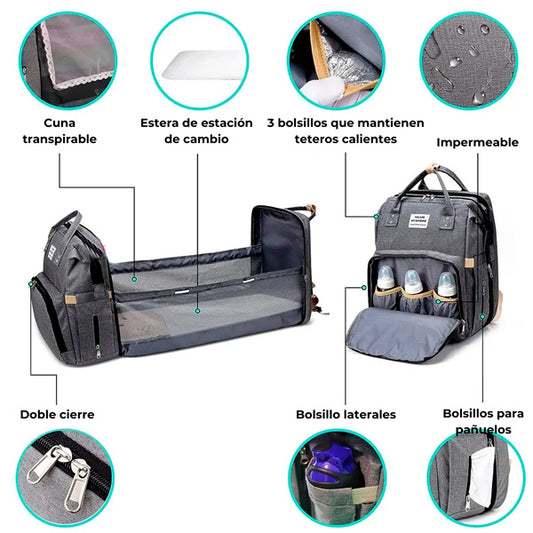 Pañalera Cambiador 👶🍼 Espacio, Elegancia y Seguridad Asegurada ¡Tu Aliada en Cada Salida con tu Bebé!